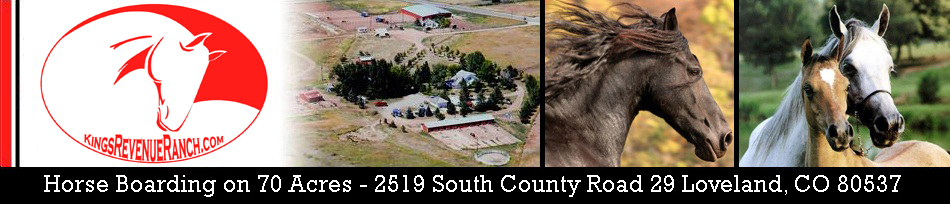 King's Revenue Ranch is located in west Loveland, snuggled in the beautiful foothills valley near Carter Lake. We offer seventy magnificent acres with three barns, numerous paddocks with shelters, a large turnout, spacious pastures with shelters, a lighted indoor arena that is dwarfed by our enormous outdoor arena and trails, trails, trails.